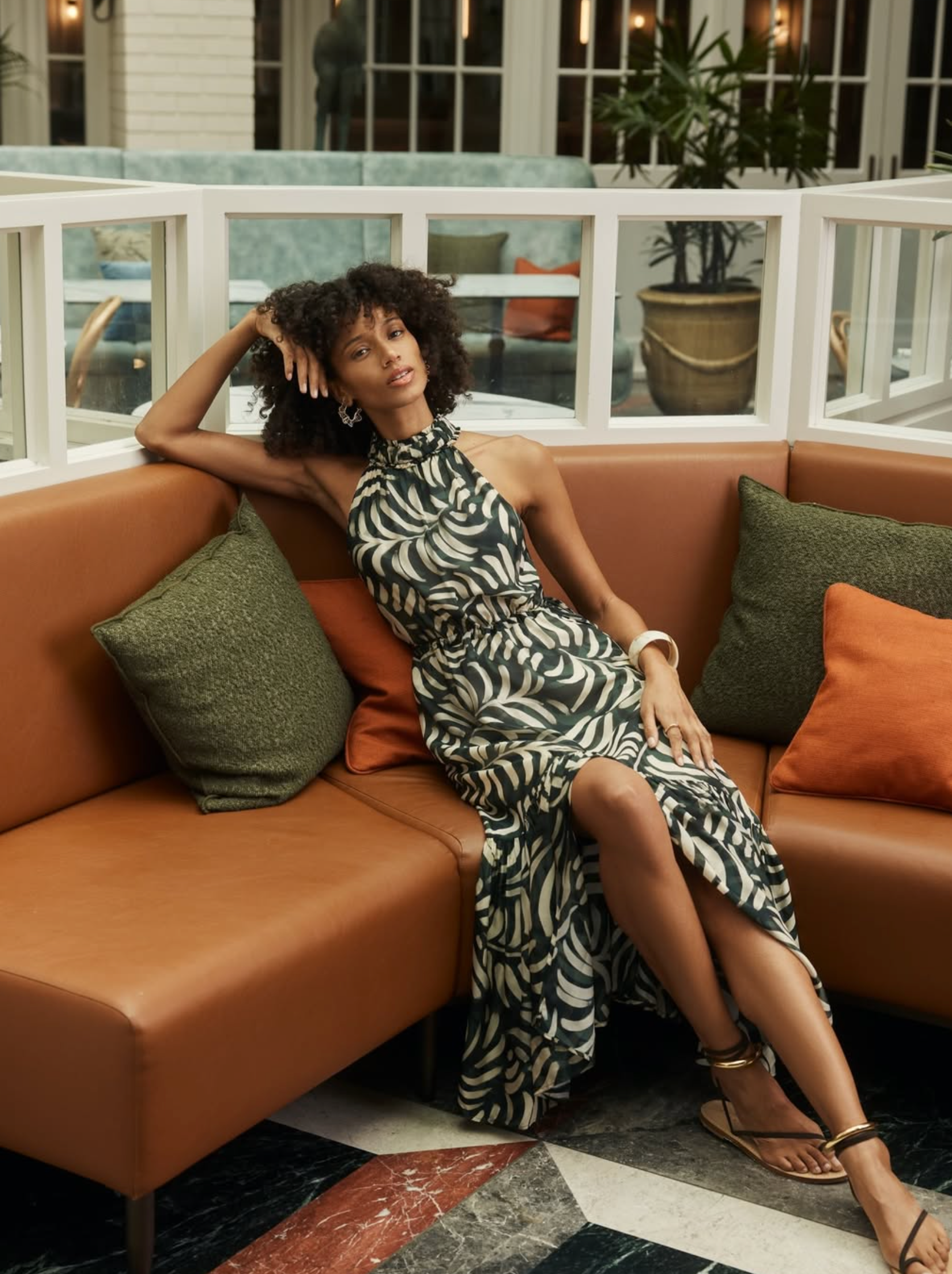 The Eden Halter Neck Dress is made from a lightweight silk blend chiffon in an exclusive print. It features a halter neck with a back button closure, a drawstring waist and a hem frill with a front split. Fully lined, this dress brings ease and fluidity to occasion dressing.