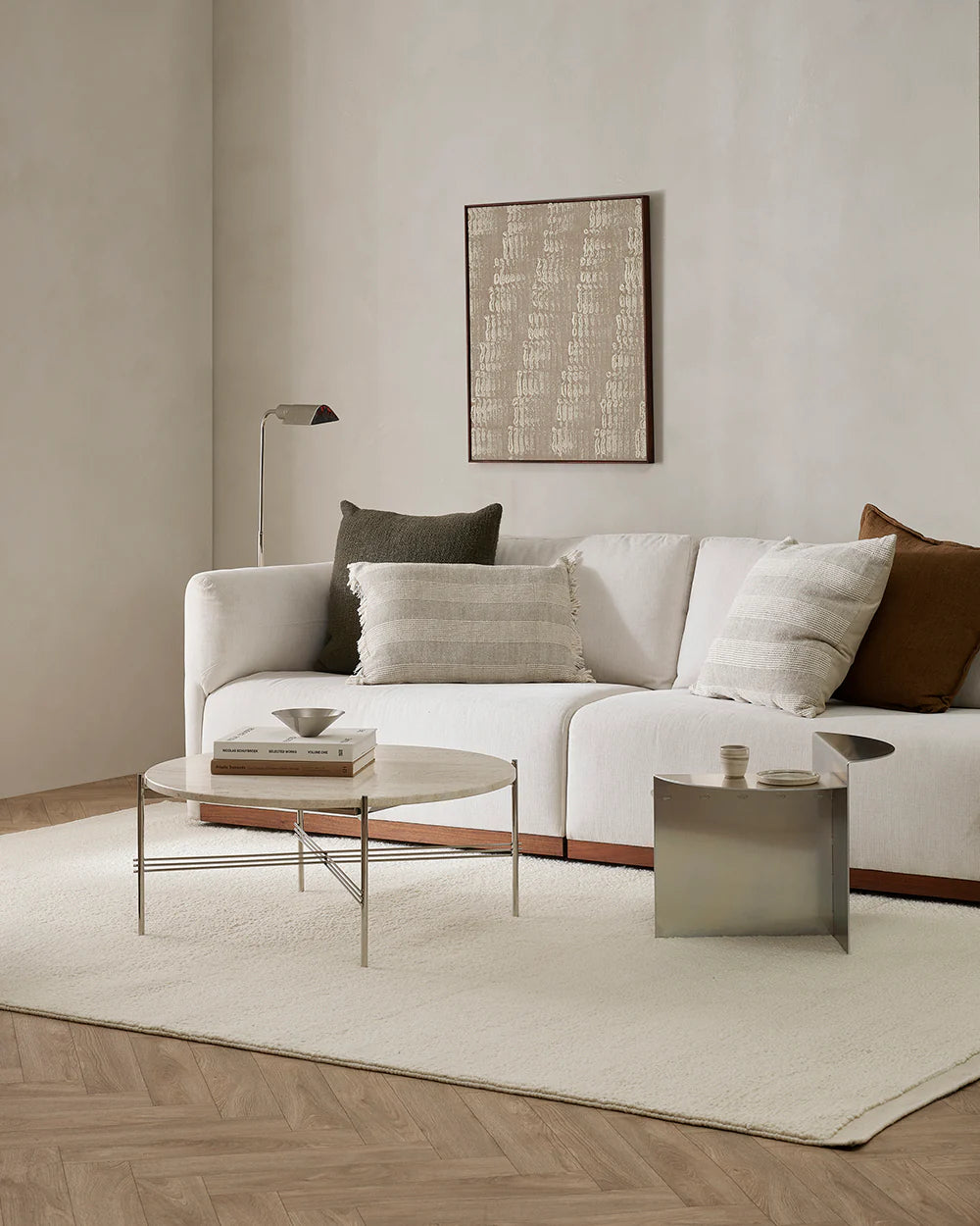 Add understated texture and warmth to your space with this beautifully crafted lumbar cushion. In a soft natural tone, the Carson's woven stripe design and fringed edges offer a relaxed yes refined reel - perfect for layering with tonal neutrals or contrasting deeper hues. Made from a linen-blend front and pure cotton back, the neutral palette and subtle surface details create an elegant coastal aesthetic.