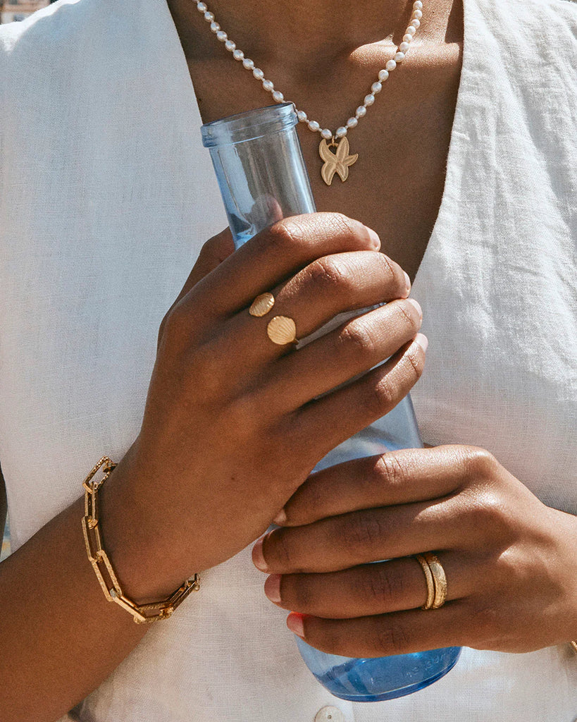 The Starfish Pearl Necklace captures the essence of coastal elegance with its delicate design. Featuring lustrous pearls delicately arranged alongside a charming starfish pendant, this necklace blends timeless sophistication with a touch of seaside charm.