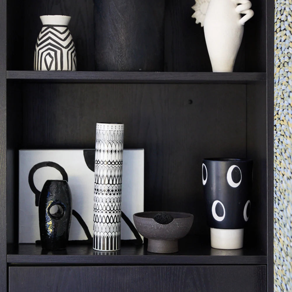 Our Obsidian Scented Diffuser pairs the moody depth of volcanic rock with a sculptural ceramic tray, handcrafted from pure black clay in Melbourne. The scent opens with vibrant cardamom and creamy Australian sandalwood before unfolding into a heart of velvety iris and rich cedarwood. It settles into a warm, smoky base of leather, amber, and vetiver — alluring, dramatic, and beautifully complex.