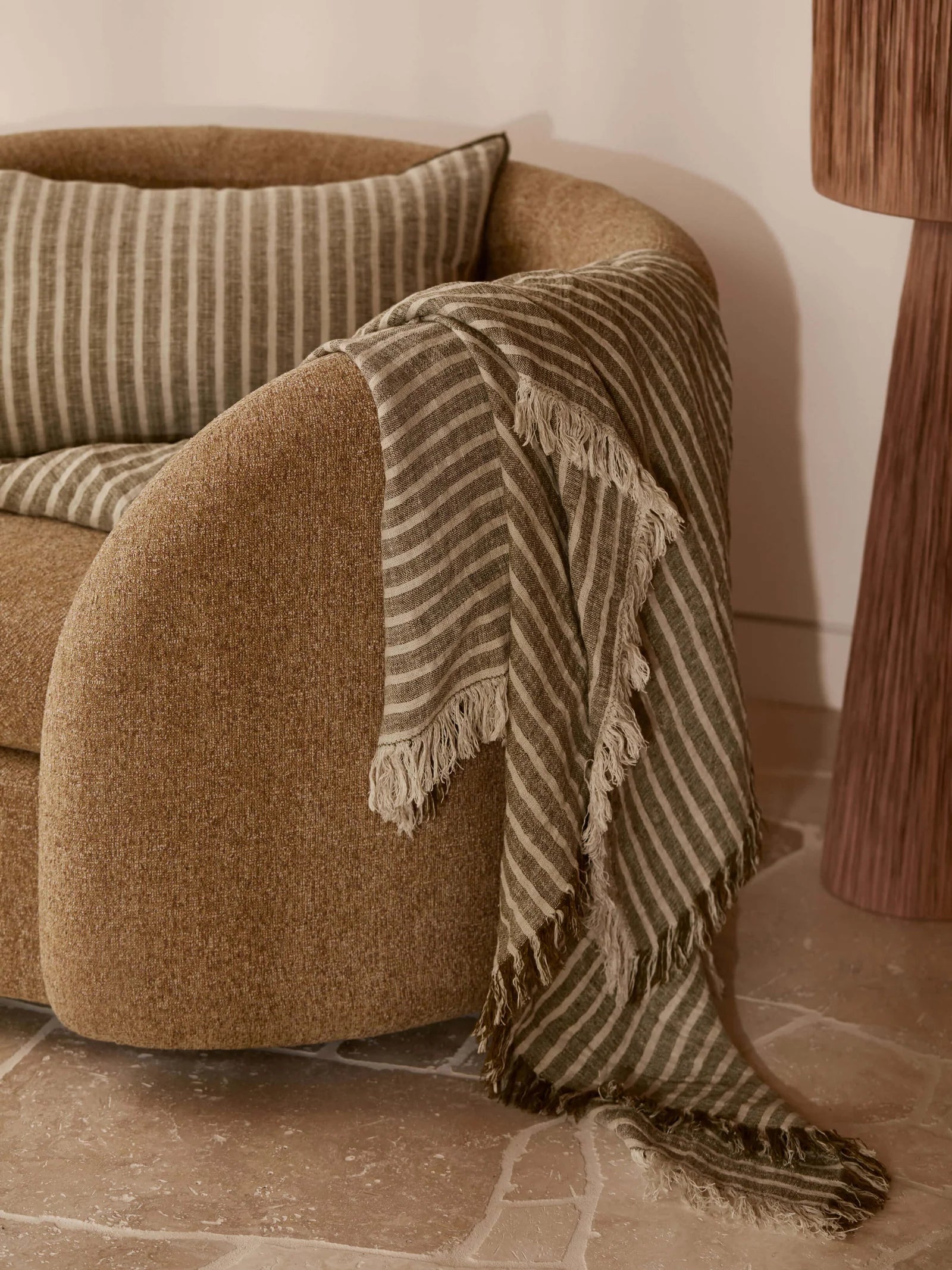 Handloomed from pure linen with a subtle crinkled texture, the Ava collection is a luxurious addition to the home. Crafted with a delicate fringing in a range of timeless colours, this relaxed woven throw can be draped effortlessly on the bed or sofa.