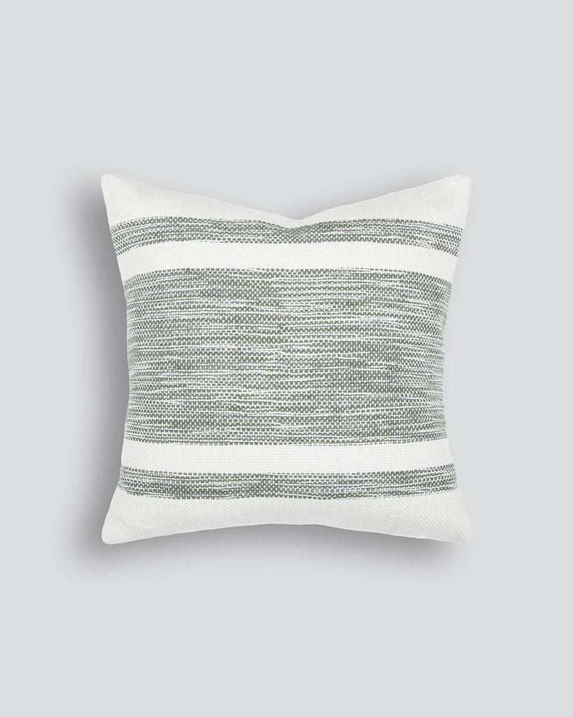 A wide, textured stripe design in fresh olive and white, the Cleo cushion coordinates beautifully with the rest of our collection.