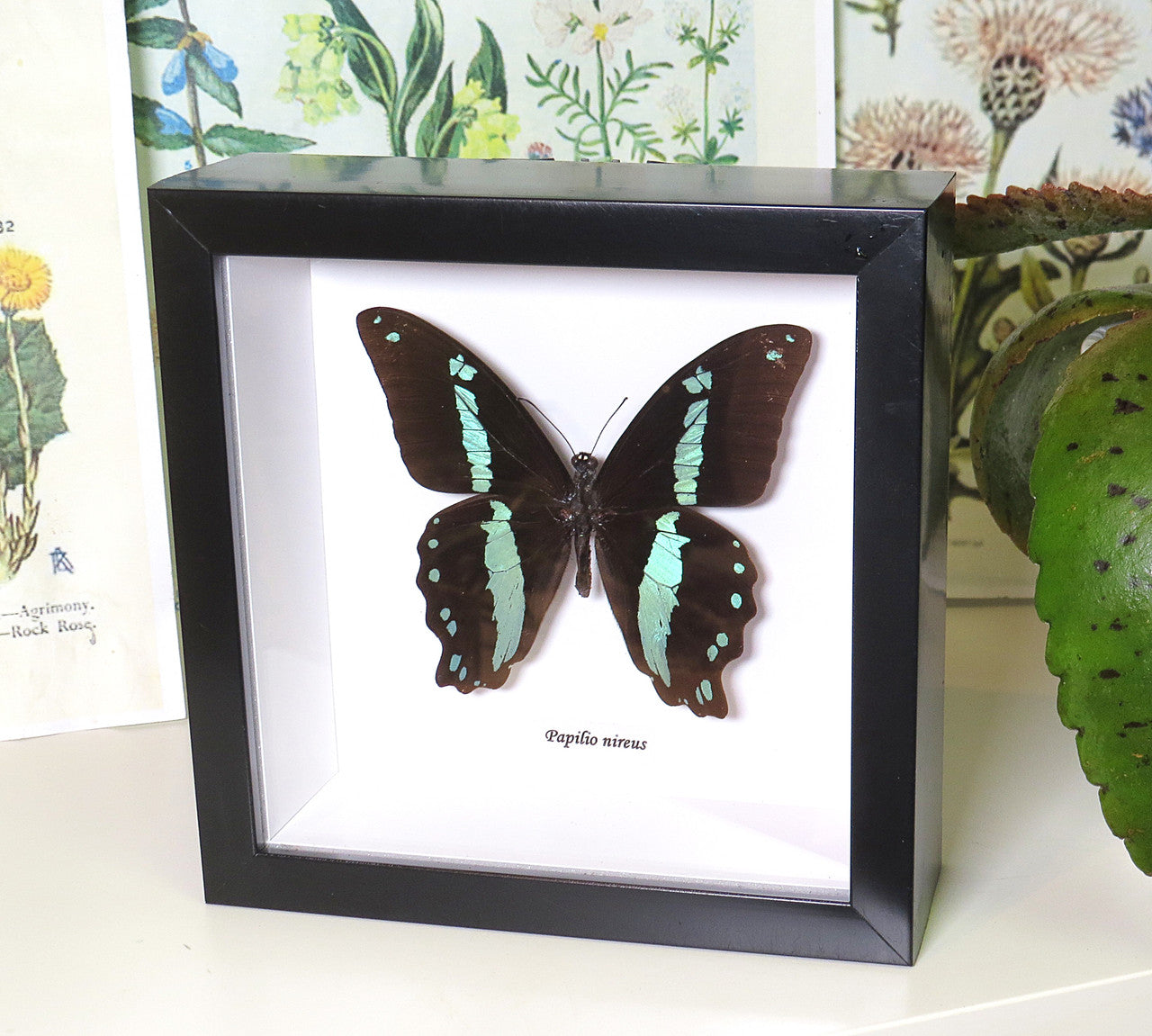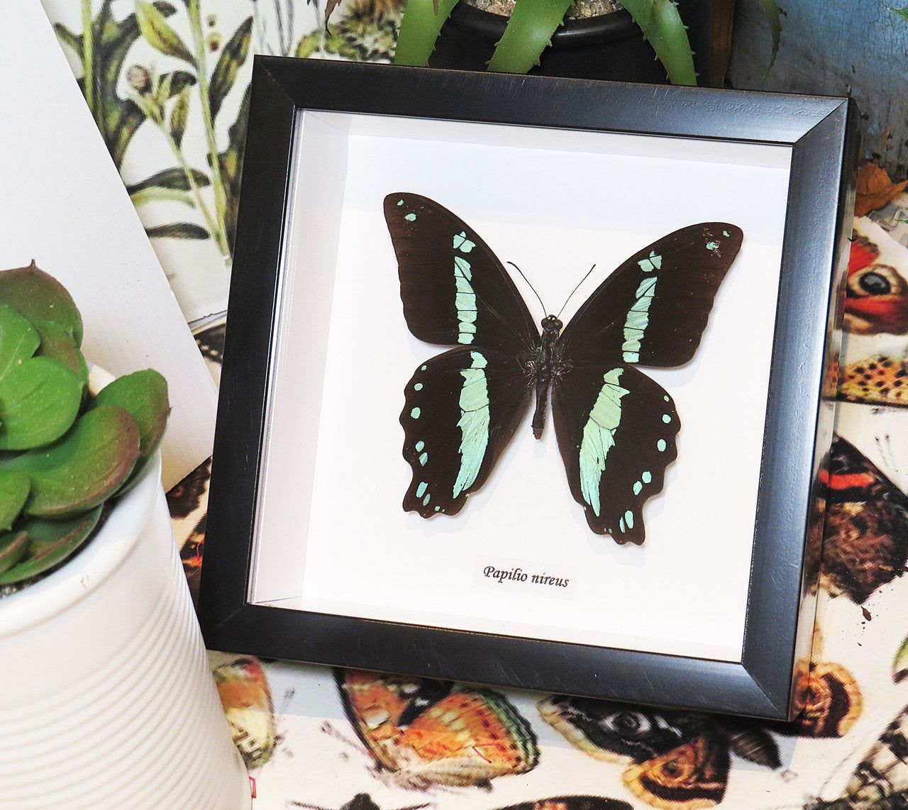 DESCRIPTION AKA African Blue Banded Swallowtail. Deep turquoise markings on both upper and lower wings on this butterfly.