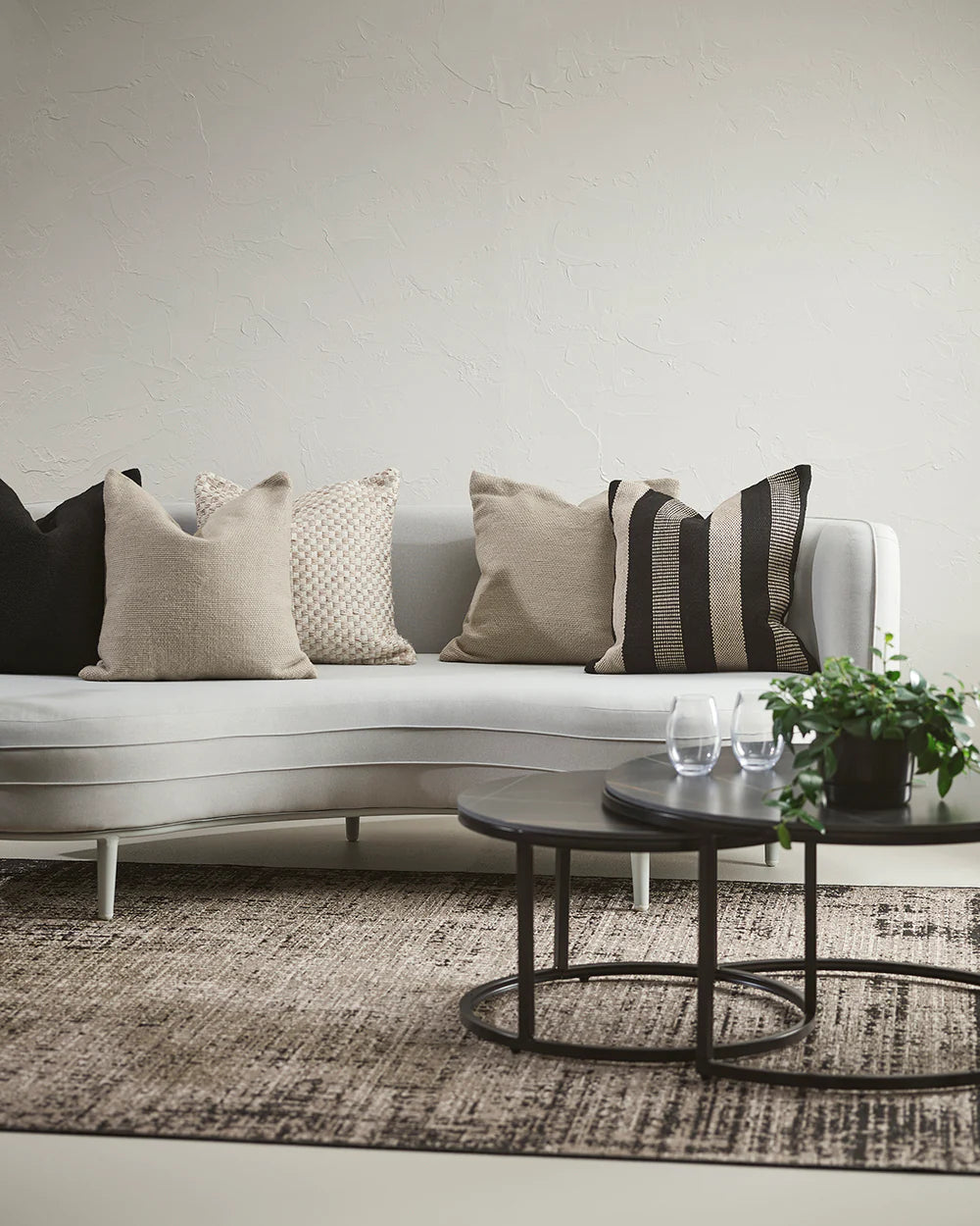 A plain, subtly textured piece, made from 100% recycled polyester. Southwold Ecru coordinates perfectly with our collection in store.
