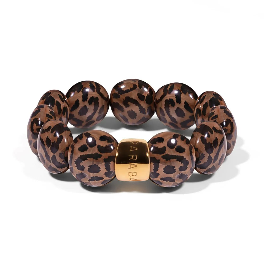 - Parabaya’s iconic leopard motif meets glossy resin beads in soft hazelnut shades