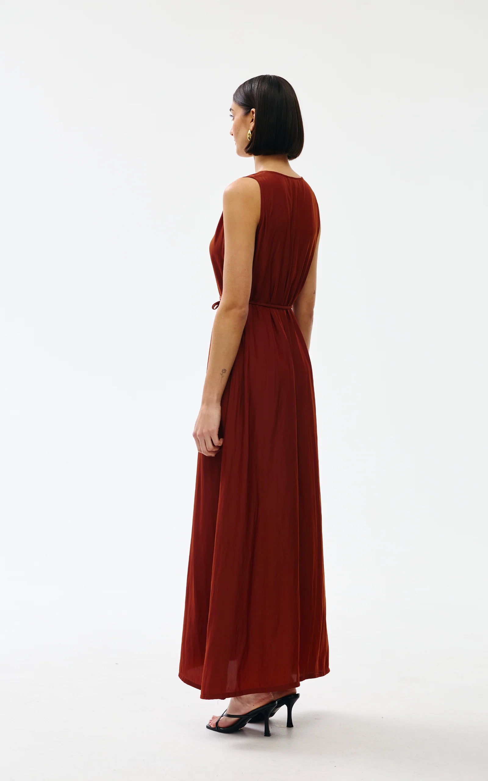 Proudly made in Australia, the Chloe dress is crafted from 100% Japanese Technical Polyester. Purposefully designed with a featherlight feel, fluid drape, and easy-care nature.