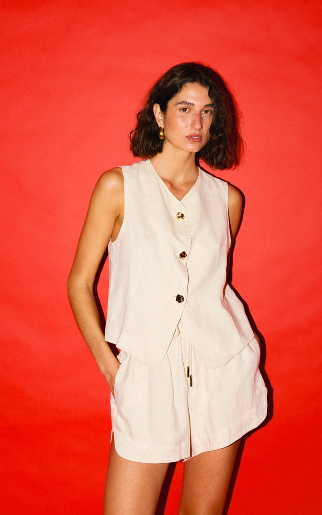 Complete the look with our Camille Vest Stone for an effortless coordinated look, or our Lover Tee White for a casual look.