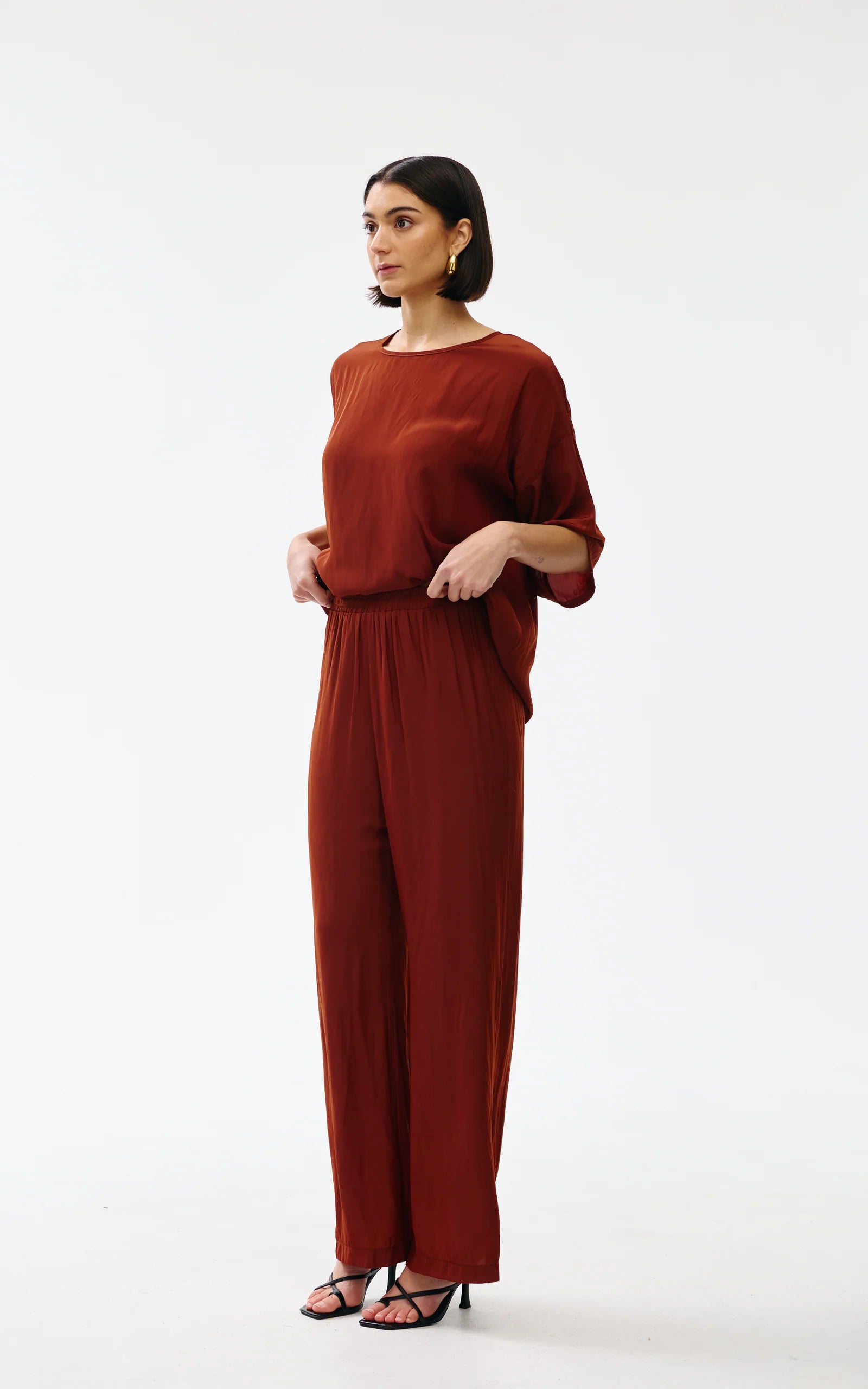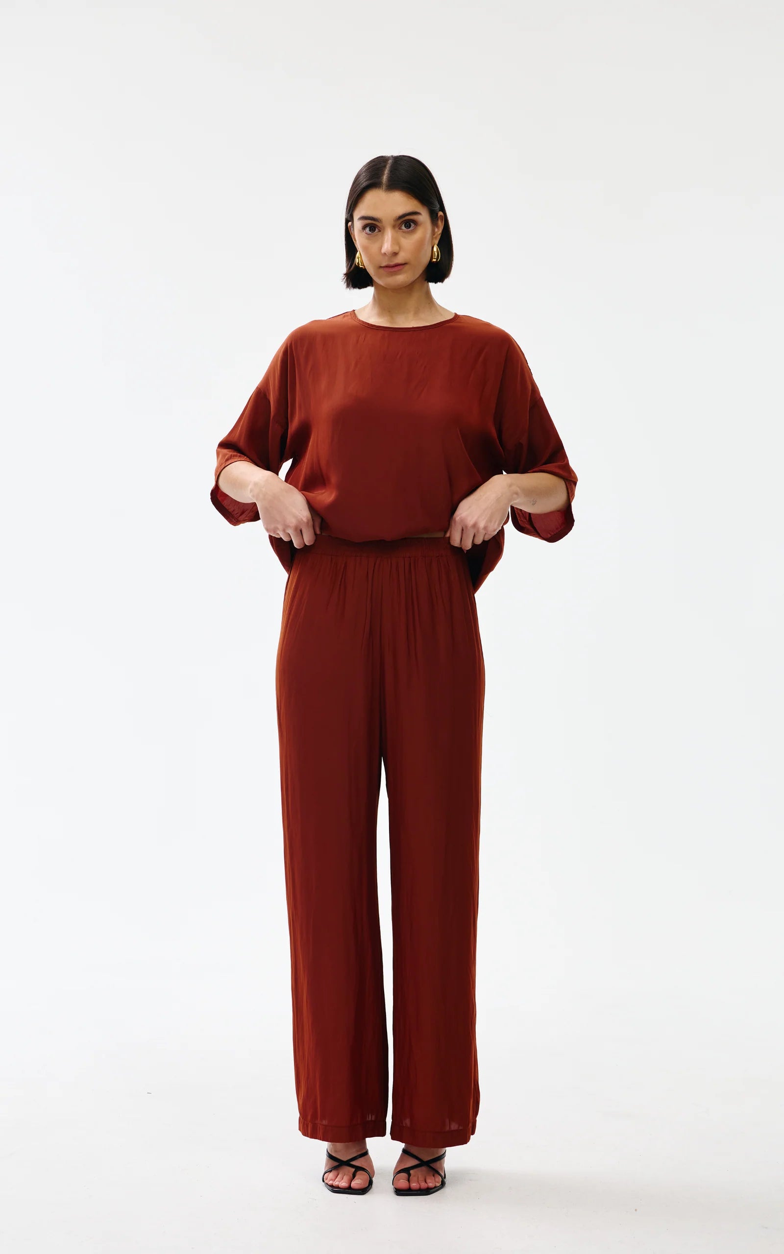 Featuring an elasticated waistband for comfort, they pair perfectly with the Ava Top or Esme Top for an elevated matching set or can be worn with any of your wardrobe staples.